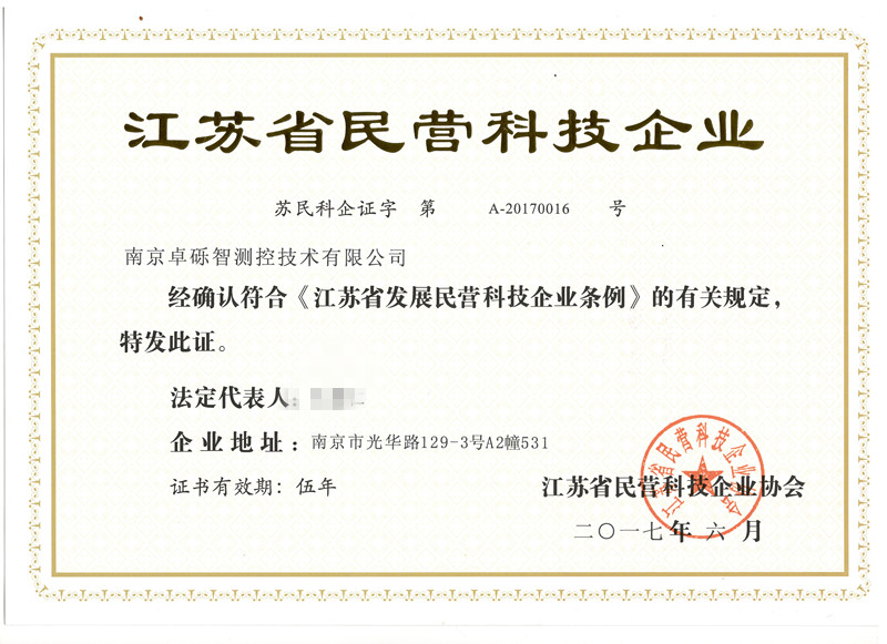 根据《江苏省发展民营科技企业条例》的规定,经企业申报,上级主管部门推荐、审核,公司于近日获得首批“江苏省民营科技企业”资质。